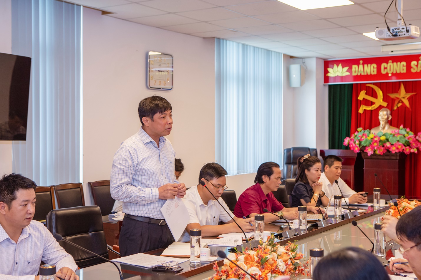 Ông Dương Sơn Bá - TGĐ HND báo cáo các nội dung với đoàn giám sát (Ảnh: Nhiệt điện Hải Phòng)