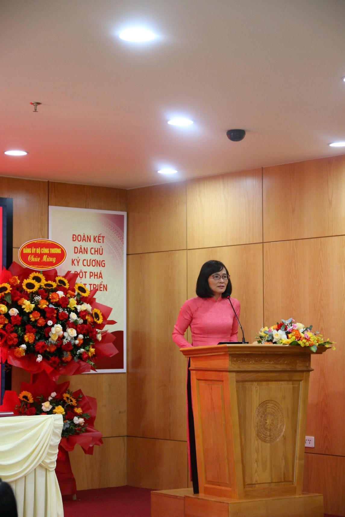Đồng chí Hà Mai Anh, Thường trực Tổ Chỉ đạo Đại hội, Đảng ủy Bộ Công Thương tặng hoa chúc mừng thành công Đại hội Đảng bộ