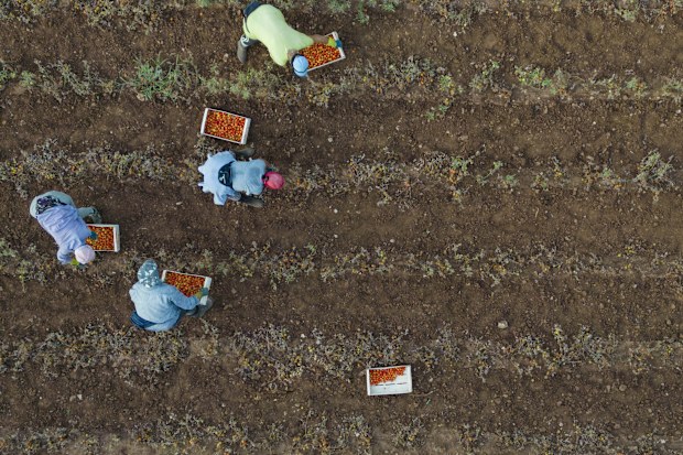 Công nhân thu hoạch cà chua ở Ý