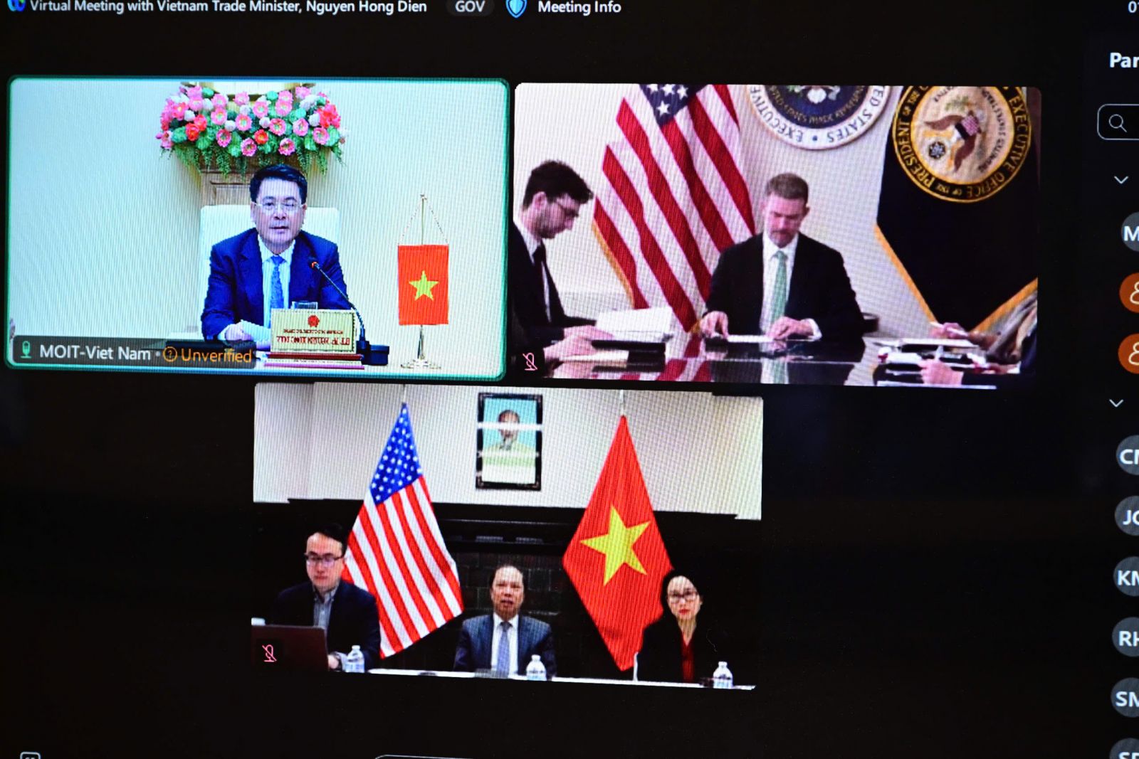 Tại cuộc điện đàm, Bộ trưởng Bộ Công Thương, Trưởng đoàn đàm phán Chính phủ Nguyễn Hồng Diên khẳng định Việt Nam coi trọng phát triển quan hệ Đối tác chiến lược toàn diện với Hoa Kỳ, mong muốn thúc đẩy quan hệ kinh tế - thương mại theo hướng cân bằng, ổn định, bền vững, hiệu quả với Hoa Kỳ; các Bộ ngành của Việt Nam sẵn sàng đàm phán xử lý những vấn đề Hoa Kỳ quan tâm, cùng với Hoa Kỳ tìm ra các giải pháp hợp lý để hai bên cùng có lợi, trên tinh thần lợi ích hài hòa, rủi ro chia sẻ.