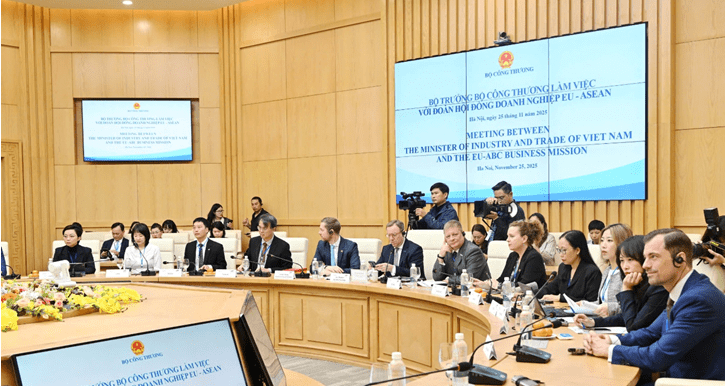 Ngày 25/11, tại trụ sở Bộ Công Thương, Bộ trưởng Nguyễn Hồng Diên cùng lãnh đạo các đơn vị có liên quan đã tiếp và làm việc với Đoàn đại diện cấp cao Hội đồng doanh nghiệp châu Âu - ASEAN (EU-ABC).