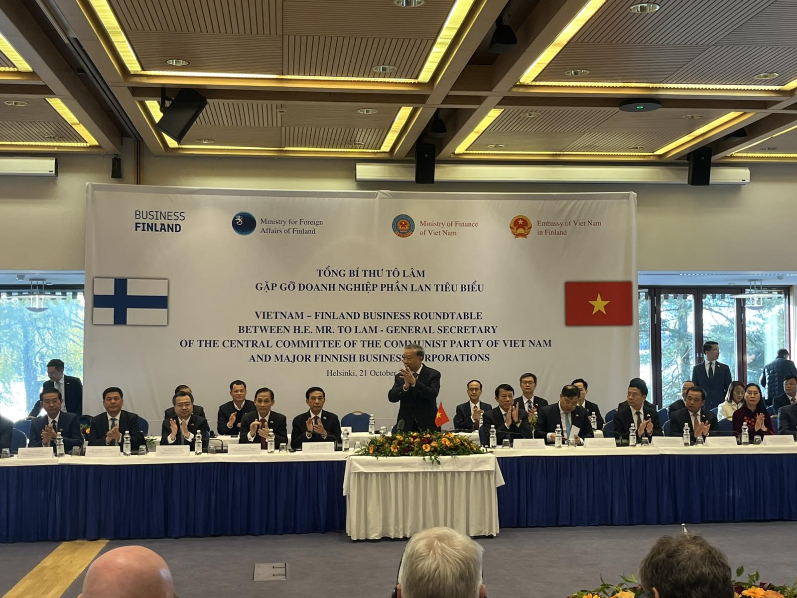 Cuộc gặp gỡ giữa Tổng Bí thư Tô Lâm và một số doanh nghiệp tiêu biểu của Phần Lan có sự tham dự của nhiều đại biểu cấp cao đến từ hai phía. Về phía Việt Nam, có đại diện Lãnh đạo Văn phòng Trung ương Đảng, Ban Chính sách, Chiến lược Trung ương, Bộ Ngoại giao, Bộ Công Thương, Bộ Tài chính, Bộ Khoa học và Công nghệ, Bộ Nông nghiệp và Môi trường, một số Bộ, ngành liên quan và hơn 10 Tập đoàn, doanh nghiệp hàng đầu của Việt Nam. Về phía Phần Lan, có sự tham gia của Ngài Matias Marttinen, Bộ trưởng Việc làm, Bộ Kinh tế và Việc làm Phần Lan, đại diện Lãnh đạo Bộ Ngoại giao Phần Lan, Cơ quan tín dụng Phần Lan, Liên đoàn Công nghiệp Phần Lan, một số Cơ quan liên quan và Chủ tịch tập đoàn, Tổng giám đốc của 17 doanh nghiêp hàng đầu của Phần Lan như: UPM, Neste, Operon, Wartsilar, Valmet, Lindstrom, Nokia, Kone, v.v…