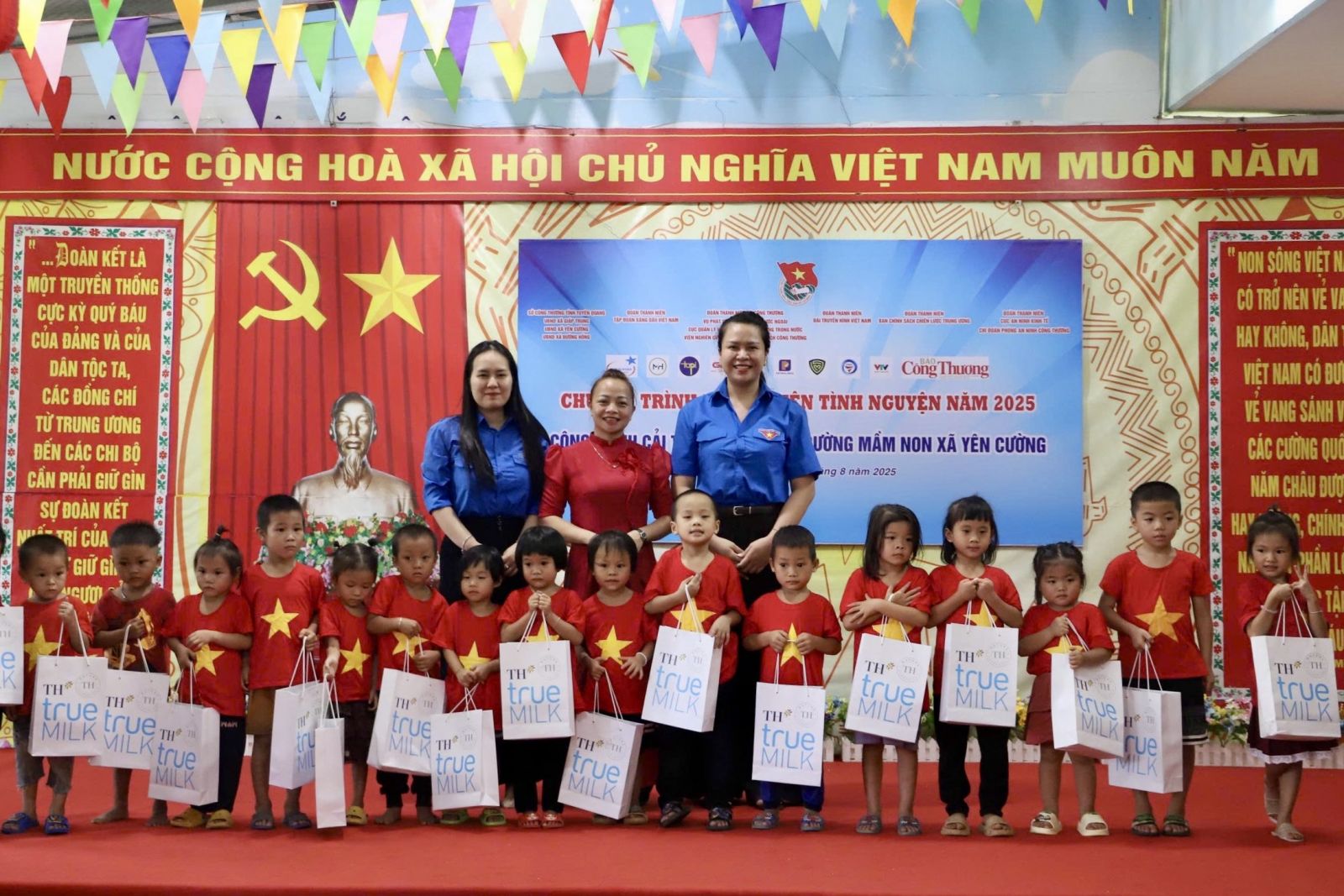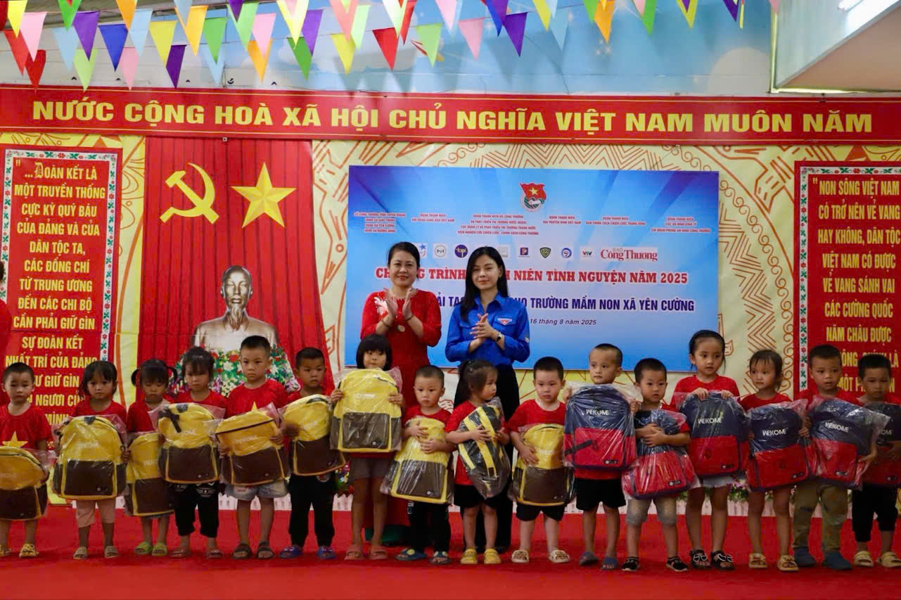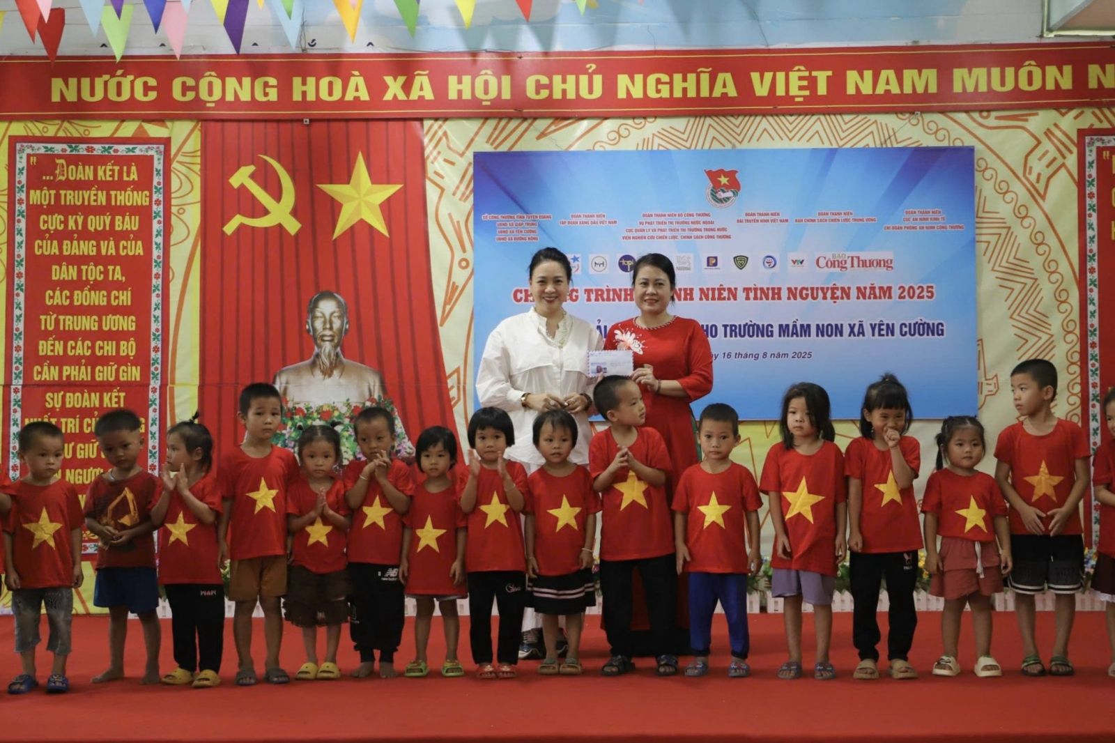 Tại xã Yên Cường, đoàn công tác đã bàn giao công trình sửa chữa bếp ăn bán trú cho Trường Mầm non Yên Cường và trao nhiều phần quà trao gồm các nhu yếu phẩm, đồ dùng học tập cho 180 học sinh Trường Mầm non Yên Cường.