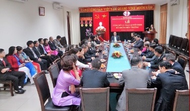 Đông đủ các đồng chí trong Ban chấp hành Đảng bộ, Ban Giám hiệu, Ban Chấp hành Công đoàn, Đoàn thanh niên, lãnh đaọ các Phòng, Khoa, Trung tâm, và Tổ - Bộ môn của Nhà trường dự lễ công bố và trao quyết định Hiệu trưởng cho đồng chí Nguyễn Thiện Nam.