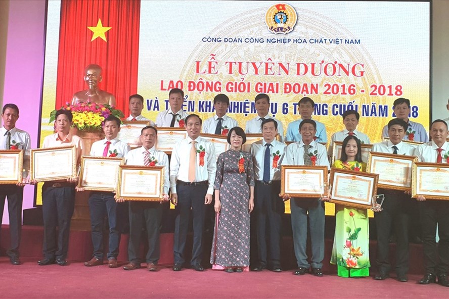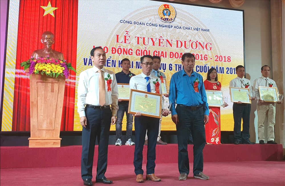 Cụ thể, trao Bằng khen của Thủ tướng Chính phủ cho 20 cá nhân là lao động sản xuất tiêu biểu; trao Bằng khen của Tổng LĐLĐ VN cho 20 cá nhân đã có thành tích xuất sắc trong phong trào thi đua “lao động giỏi, lao động sáng tạo” giai đoạn 2016 - 2018 và trao tặng bằng khen của Bộ trưởng Bộ Công thương cho 30 cá nhân thuộc Tập đoàn Hóa chất Việt Nam.