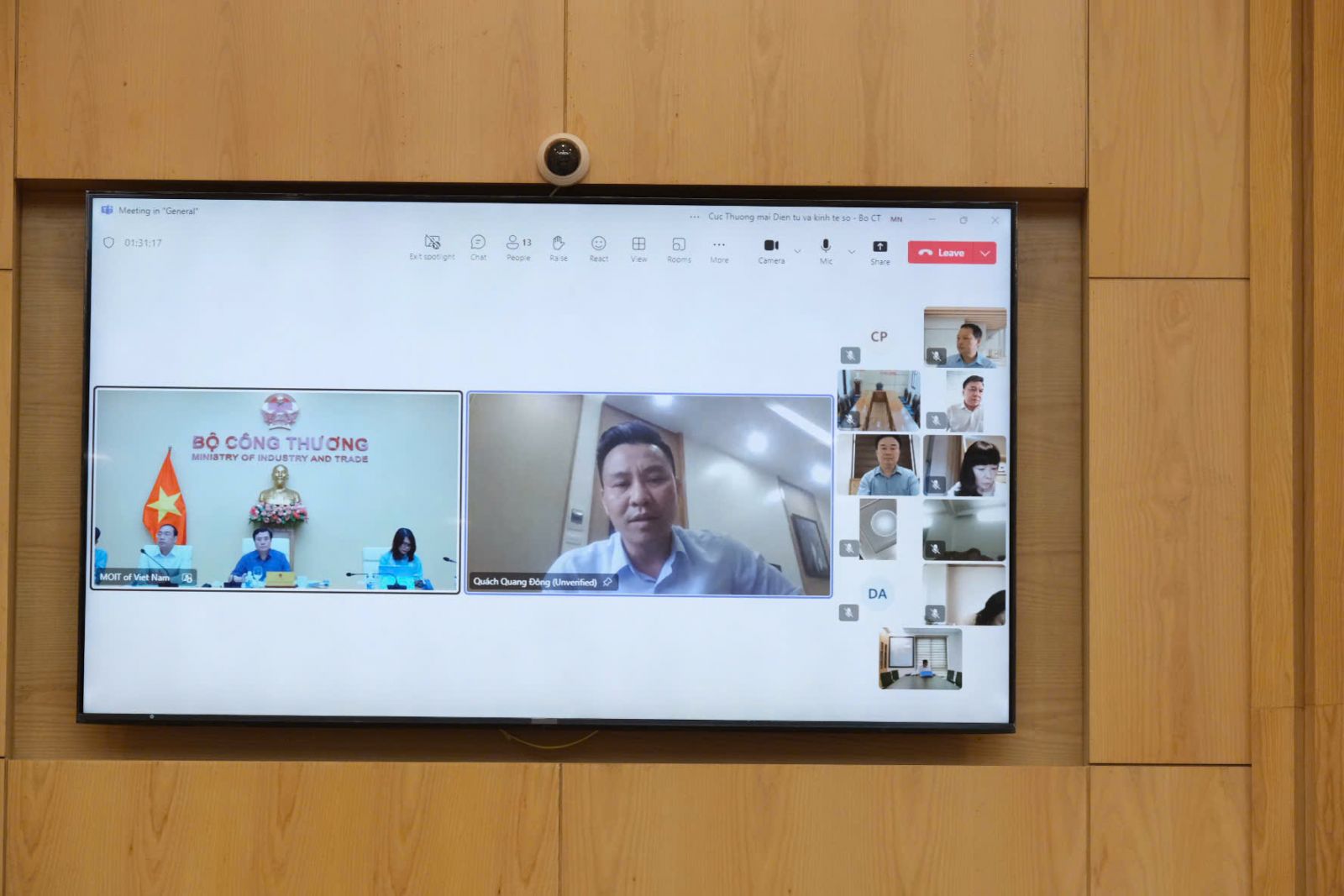 Ông Quách Quang Đông, Phó Cục trưởng Cục Đổi mới sáng tạo, Chuyển đổi xanh và Khuyến công trình bày báo cáo thông qua hình thức trực tuyến