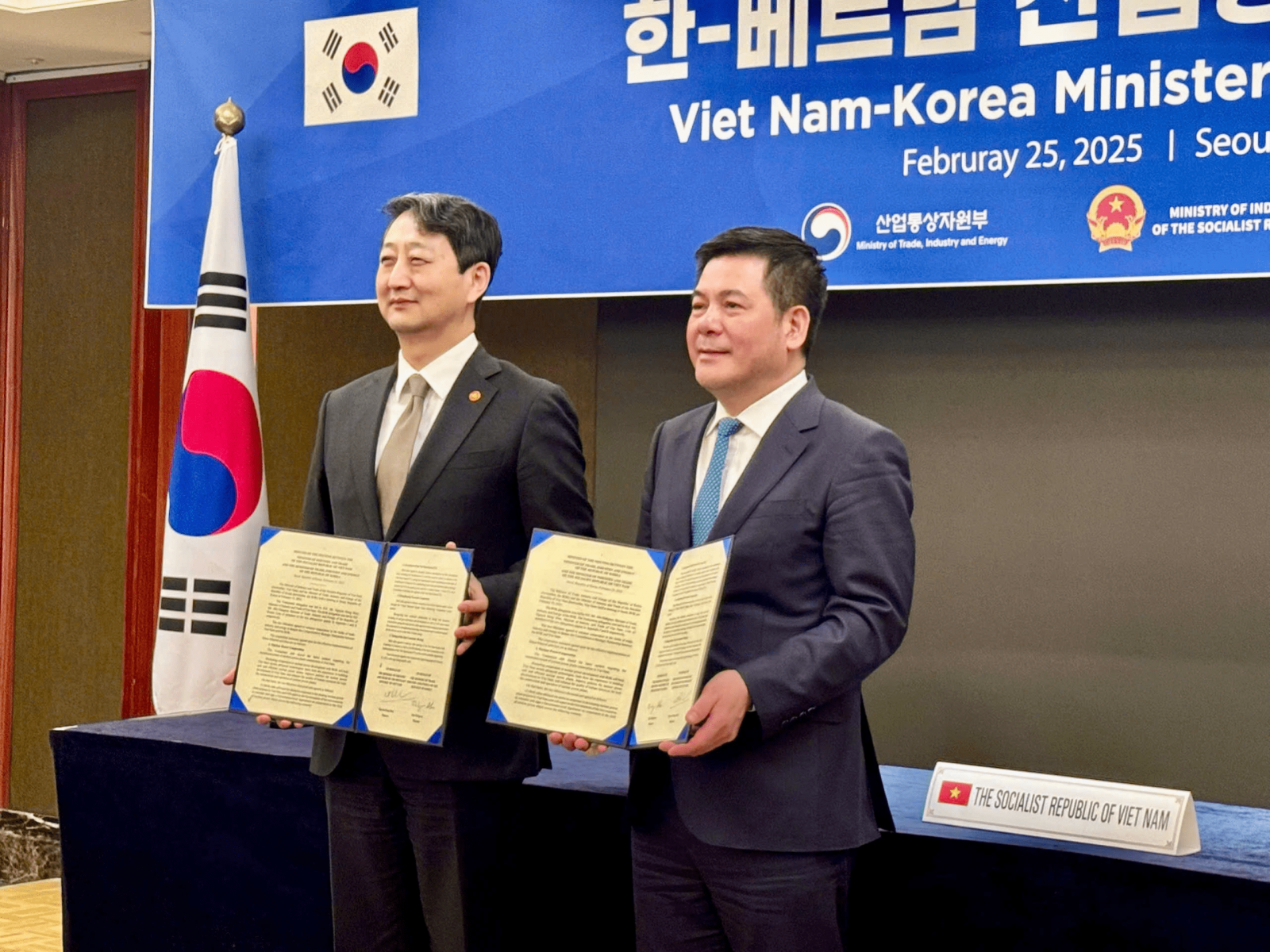 Bộ trưởng Nguyễn Hồng Diên dẫn đầu Đoàn công tác của Bộ Công Thương làm việc với Bộ Bộ trưởng Bộ Công nghiệp, Thương mại, Năng lượng Hàn quốc nhằm thảo luận thúc đẩy các lĩnh vực hợp tác giữa hai nước trong các lĩnh vực. Hai Bộ trưởng đã ký kết Bản ghi nhớ hợp tác trong lĩnh vực năng lượng, công nghiệp và thương mại.