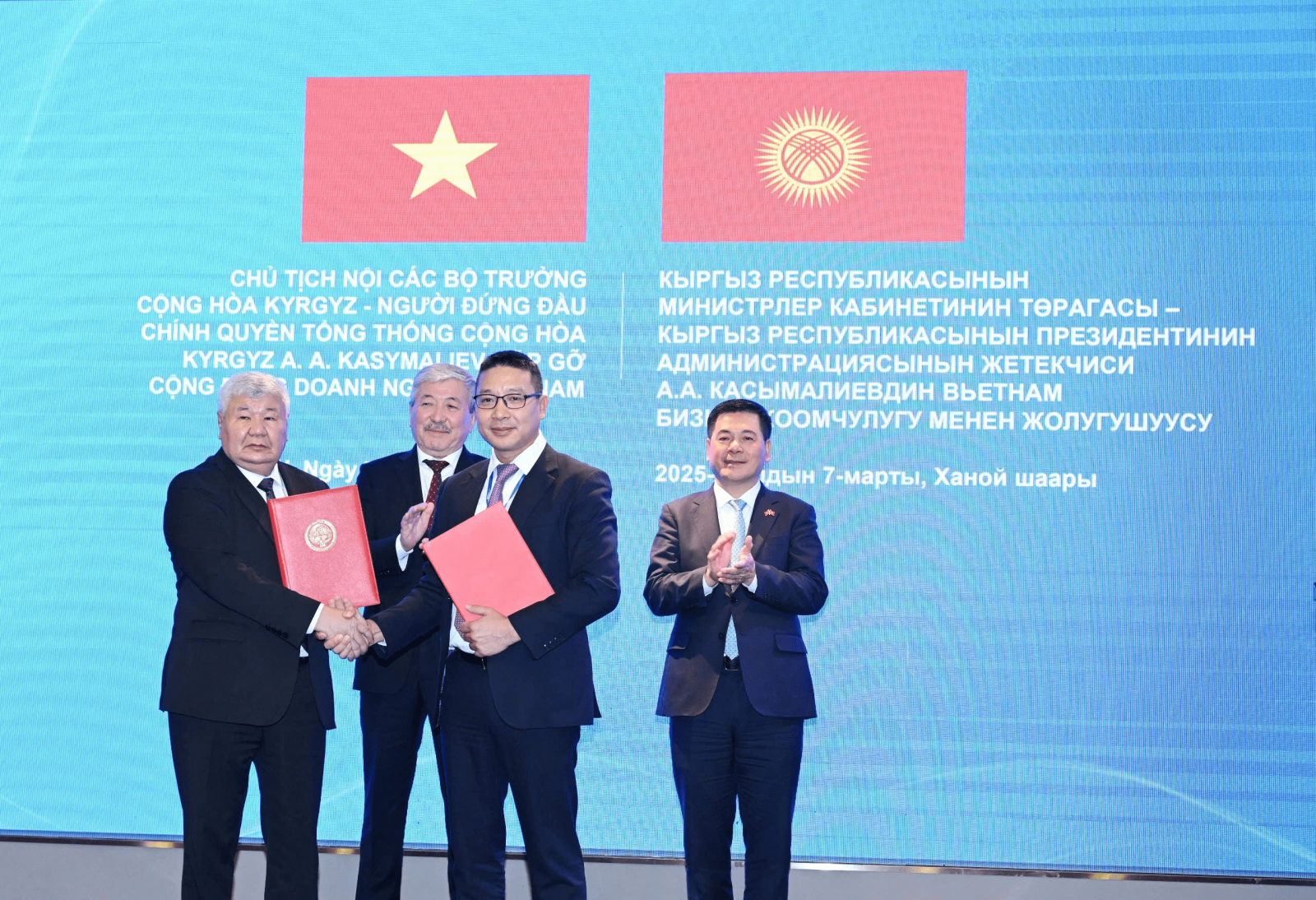 Theo đó, kim ngạch thương mại song phương giữa hai nước trong những năm gần đây có bước tăng trưởng tích cực, nhất là từ khi Hiệp định thương mại tự do giữa Việt Nam và Liên minh Kinh tế Á-Âu (trong đó Kyrgyzstan là thành viên) có hiệu lực từ năm 2016. Đặc biệt, năm 2024 vừa qua, kim ngạch thương mại hai chiều đã đạt mức cao nhất từ trước đến nay (tăng 172%), đưa Việt Nam trở thành đối tác thương mại lớn nhất của Kyrgyzstan tại ASEAN và ở chiều ngược lại Kyrgyzstan là đối tác thương mại thứ 3 của Việt Nam tại khu vực Trung Á.