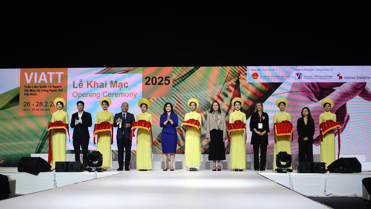 Sáng ngày 26/2, tại Trung tâm Hội chợ và Triển lãm Sài Gòn (SECC), TP. Hồ Chí Minh đã chính thức diễn ra Triển lãm Quốc tế ngành Dệt may và Công nghệ Dệt may 2025 (VIATT 2025). Thứ trưởng Bộ Công Thương Phan Thị Thắng đến dự và khai mạc triển lãm.