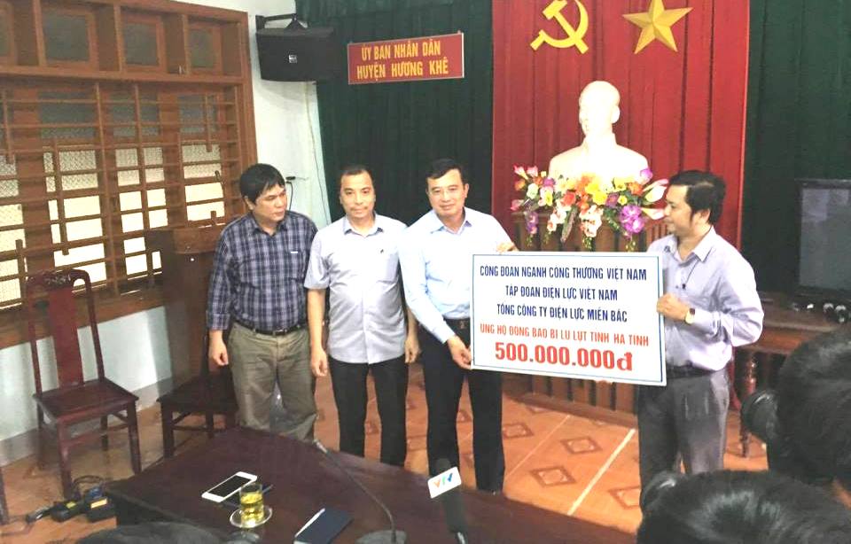 Cũng trong chiều ngày 18/10/2016, tại tỉnh Hà Tĩnh, Thứ trưởng Bộ Công Thương Hoàng Quốc Vượng cùng đại diện Tập đoàn Điện lực Việt Nam, Tổng công ty Điện lực miền Bắc đã trao số tiền 500.000.000 đồng cho đồng bào bị lũ lụt Hà Tĩnh.