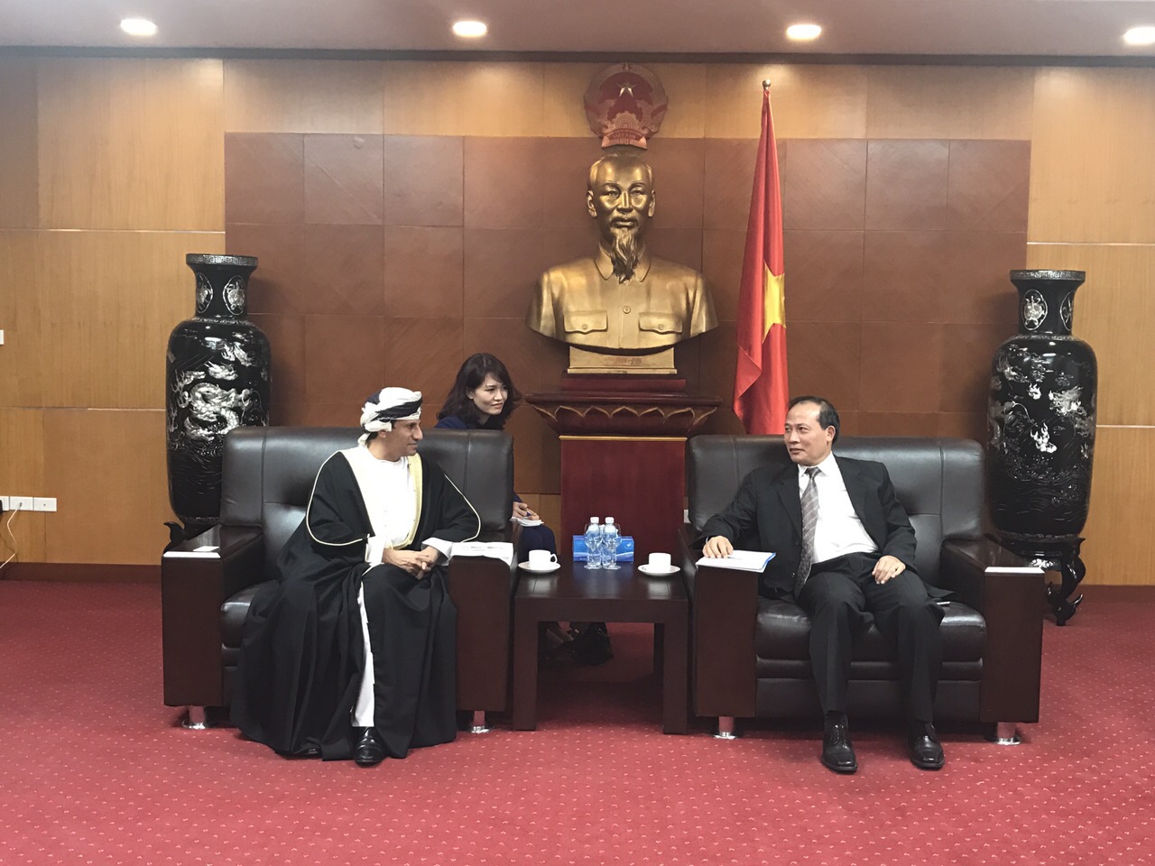 Tham dự buổi làm việc về phía Bộ Công Thương có đại diện lãnh đạo các đơn vị Vụ Thị trường Châu Phi, Tây Á, Nam Á, Vụ Hợp tác quốc tế; về phía Ô-man có Ngài Đại sứ , Phó Đại sứ Vương quốc Ô-man tại Việt Nam và Vụ trưởng Vụ ASEAN - Bộ Ngoại giao Ô-man.