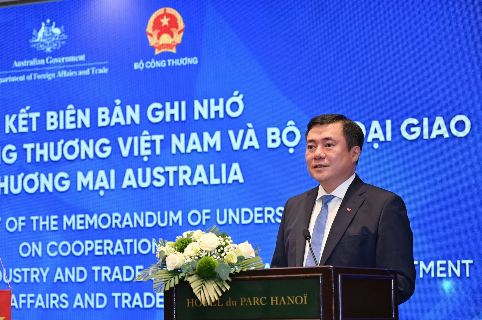 Đại diện cho Bộ Công Thương Việt Nam - Thứ trưởng Bộ Công Thương Nguyễn Sinh Nhật Tân và Đại sứ Australia tại Việt Nam Gillian Bird - đại diện cho Bộ Ngoại giao Thương mại Australia đã ký kết Biên bản ghi nhớ về việc hợp tác để tối đa hóa tiềm năng của các FTA.
