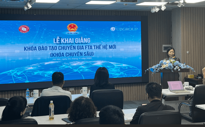 Sáng ngày 04/11/2025, Bộ Công Thương phối hợp với Trường Đại học Ngoại thương và Công ty Cổ phần Tập đoàn UB đã tổ chức Lễ khai giảng Khoá đào tạo chuyên sâu để trở thành chuyên gia về hiệp định EVFTA và các FTA thế hệ mới cho các cơ quan quản lý, doanh nghiệp và hiệp hội ngành hàng năm 2025.