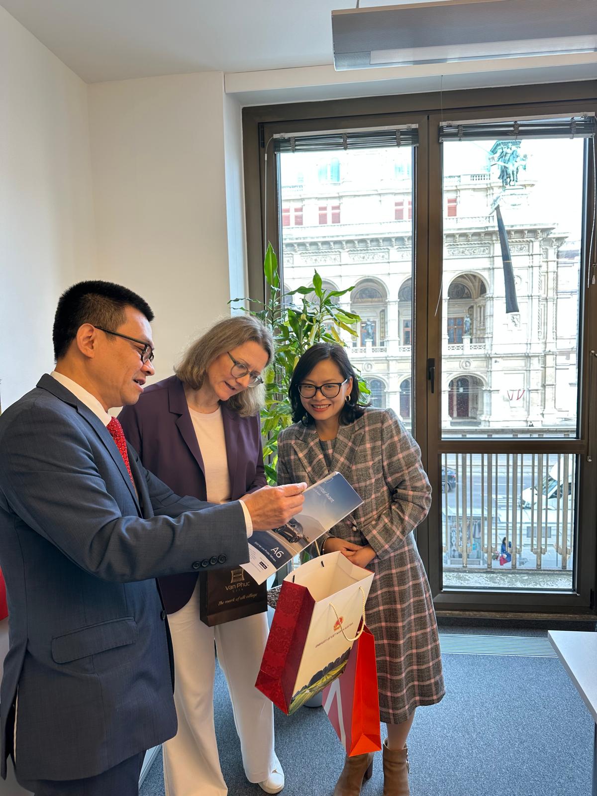 Đại sứ Vũ Lê Thái Hoàng và Trưởng ban Việc làm tại Áo Margit Kreuzhuber