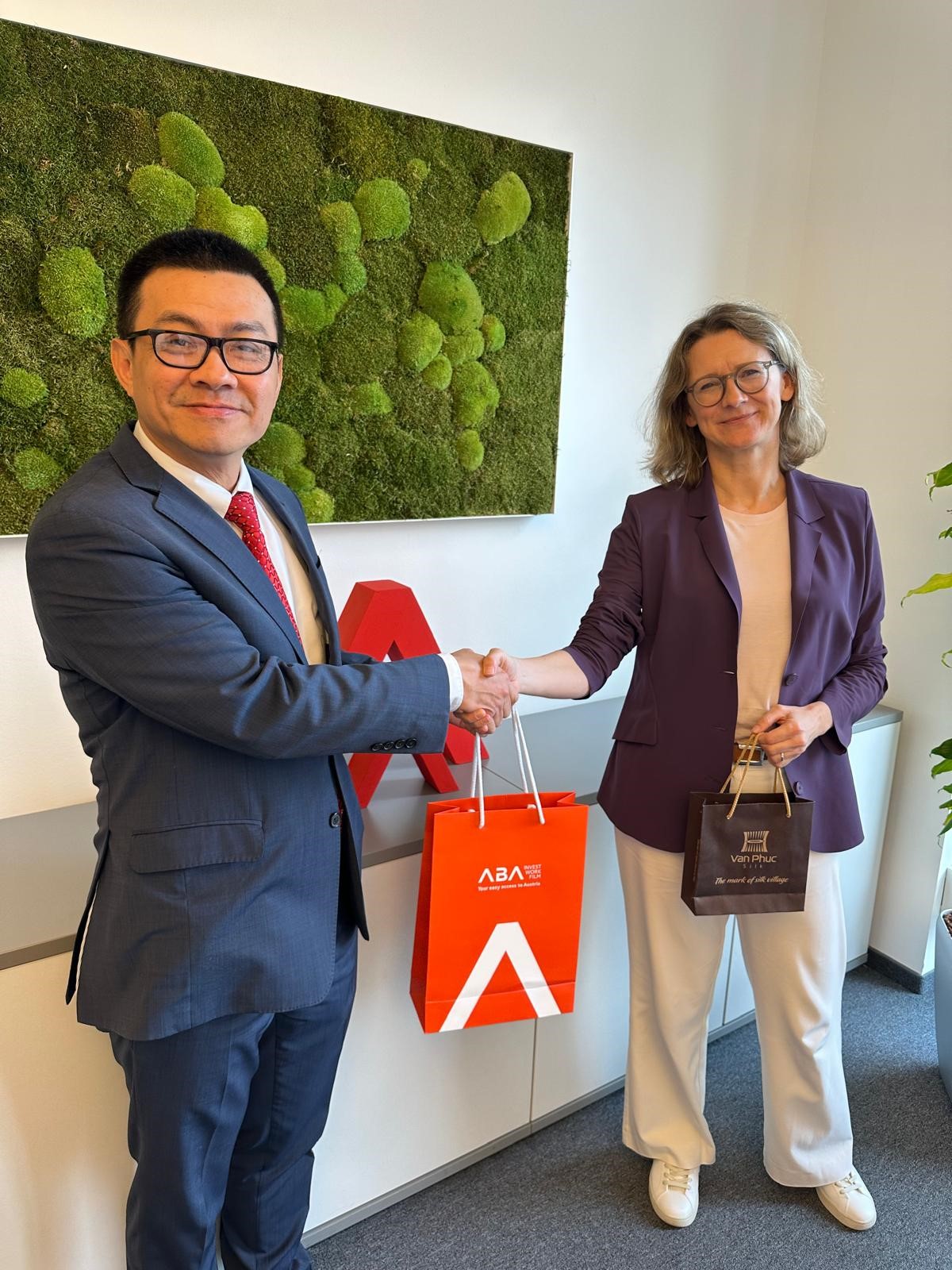 Cùng tham dự buổi làm việc có Trưởng Thương vụ Việt Nam tại Áo Đinh Thị Hoàng Yến. ABA là cơ quan thuộc Bộ Kinh tế, Năng lượng và Du lịch liên bang Áo, ABA có ba mảng việc lớn là tư vấn về việc làm, đầu tư kinh doanh tại Áo, và hợp tác điện ảnh. WORK in AUSTRIA cung cấp hỗ trợ miễn phí cho các nhà nghiên cứu quốc tế muốn làm việc tại Áo. INVEST in AUSTRIA tư vấn cho các công ty R&D quốc tế mong muốn thành lập hoặc mở rộng hoạt động kinh doanh tại Áo.