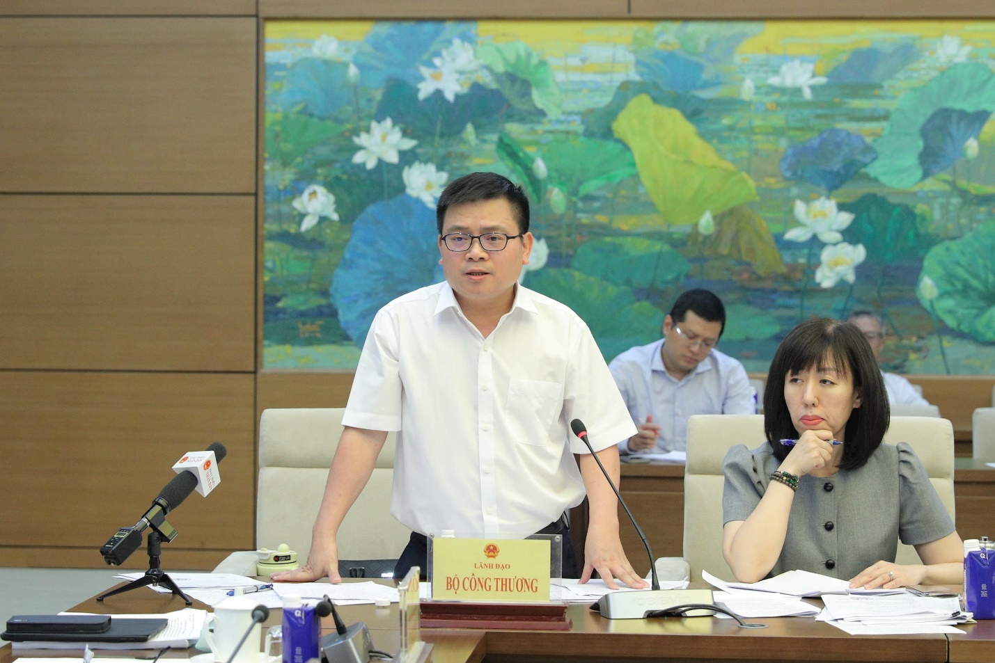 Thứ trưởng Bộ Công thương Trương Thanh Hoài báo cáo với Đoàn giám sát. Ảnh: ĐBND