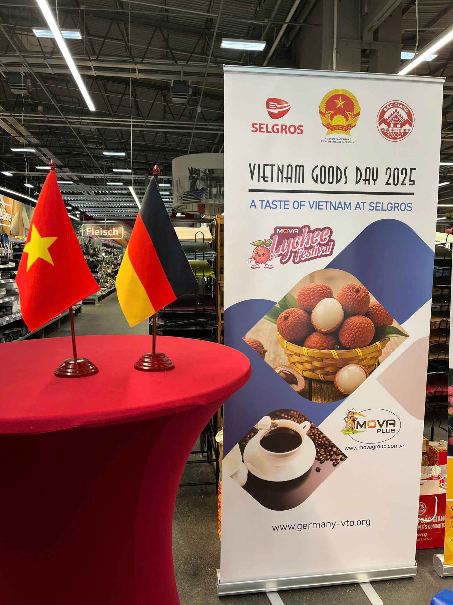 Ngày 17/6/2025, Thương vụ Việt Nam tại CHLB Đức phối hợp với hệ thống đại siêu thị bán buôn Selgros cùng đoàn xúc tiến thương mại tỉnh Bắc Giang tổ chức “Ngày hàng Việt Nam” tại Berlin, Đức.