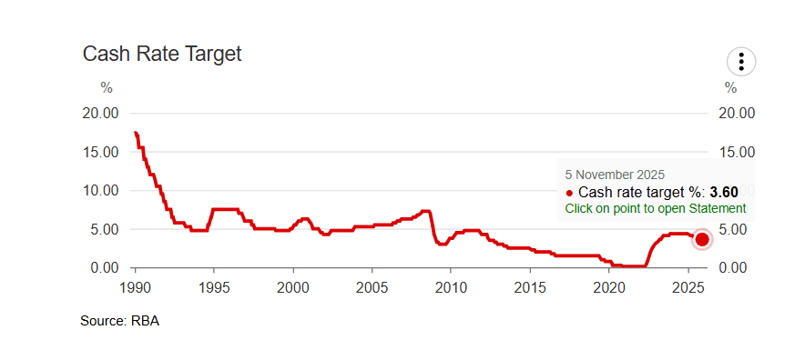 Tại phiên họp thường kỳ diễn ra vào tháng 11/2025, Ngân hàng Trung ương Úc (RBA) quyết định giữ nguyên lãi suất cơ bản ở mức 3,6%. Quyết định được đưa ra sau khi Hội đồng quản trị của RBA đánh giá lạm phát đang có dấu hiệu tăng trở lại trong những tháng gần đây, đồng thời cảnh báo giá thuê nhà và một số dịch vụ có thể tiếp tục tăng trong năm 2026.