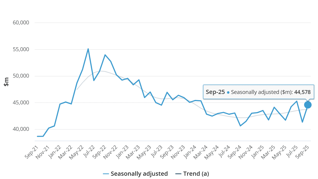 Theo số liệu của cơ quan Thống kê Úc (ABS), thương mại xuất nhập khẩu hàng hóa của Úc trong tháng 9/2025 đã phục hồi tăng so với tháng trước, trong đó kim ngạch xuất khẩu hàng hóa đạt mức 44,6 tỷ AUD, tăng 7,9% so với tháng trước, chủ yếu thuộc nhóm hàng hóa phi tiền tệ.