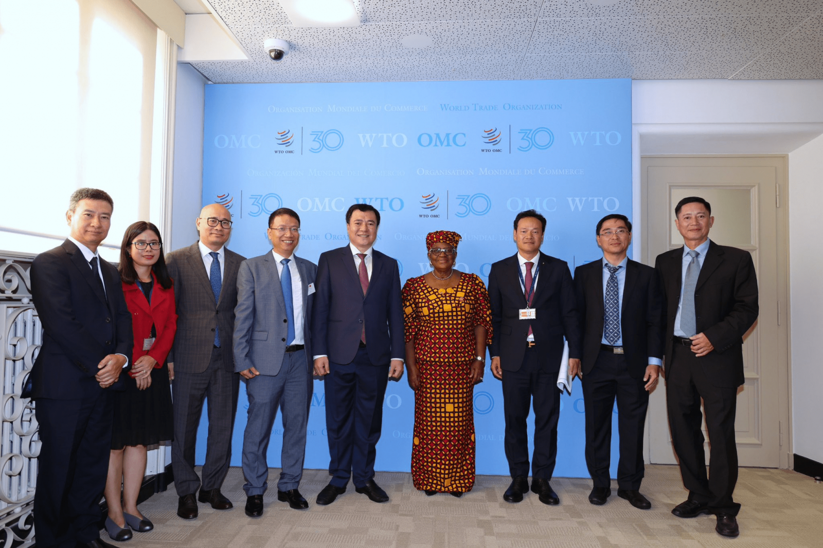 Tổng Giám đốc Ngozi Okonjo-Iweala đã bày tỏ sự vui mừng và đánh giá cao những đóng góp thực chất của Việt Nam vào các hoạt động chung của WTO. Bà hoan nghênh việc Việt Nam đã hoàn tất phê chuẩn Hiệp định Trợ cấp nghề cá và sẽ vinh danh Việt Nam trong phiên họp Đại hội đồng WTO vào ngày 15/9/2025 với ý nghĩa là sự kiện đánh dấu việc Hiệp định đi vào hiệu lực. Bà cũng ghi nhận sự chủ động của Việt Nam khi Thủ tướng Chính phủ đã phê duyệt việc tham gia MPIA, coi đây là một tin "nóng hổi" và là một bước đi rất tích cực của Việt Nam. Bà cho rằng nền kinh tế Việt Nam đang tiếp tục hoạt động tốt, bất kể bối cảnh căng thẳng thương mại, là một tấm gương về sự năng động trong hệ thống thương mại đa phương. Bà cũng thể hiện sự đánh giá cao đối với Phái đoàn Việt Nam tại Geneva cho các nỗ lực, đóng góp hiệu quả vừa qua.