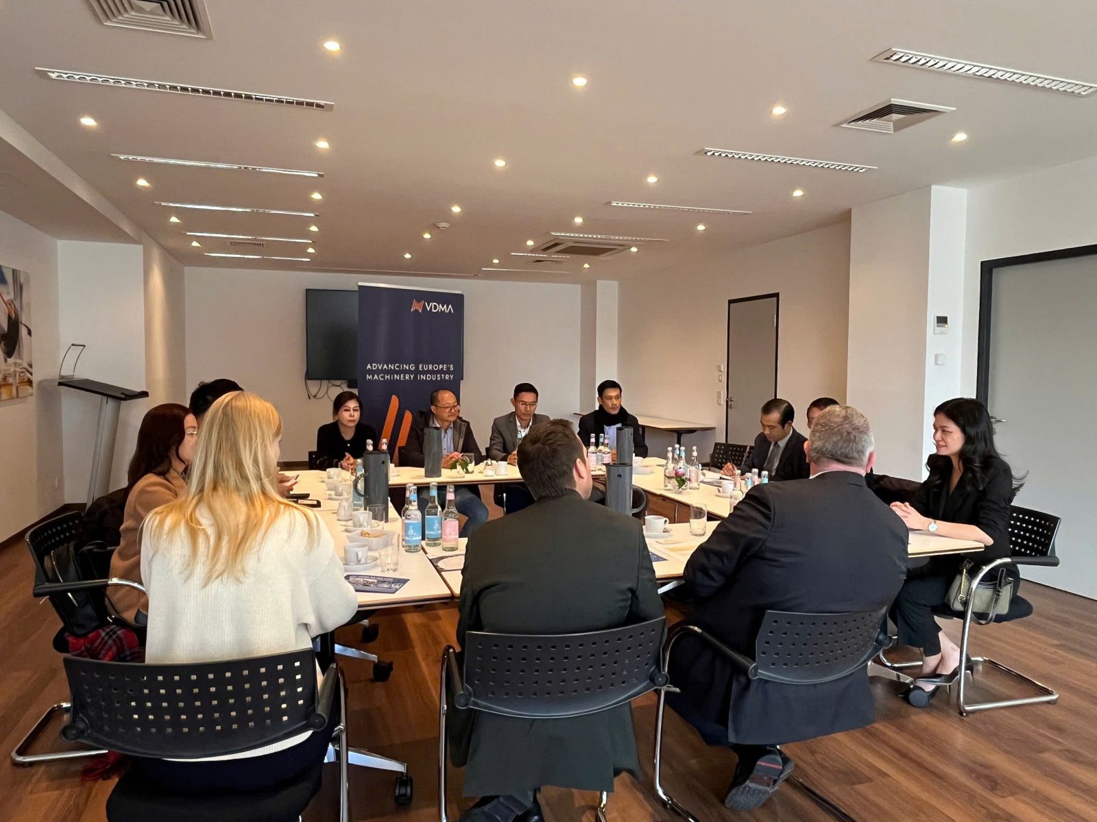 Ngày 25/9/2025, Thương vụ đã thu xếp buổi làm việc giữa đoàn doanh nghiệp do HAMEE dẫn đầu làm việc với Hiệp hội sản xuất máy móc và thiết bị Đức (VDMA) – một trong những Hiệp hội công nghiệp hàng đầu châu Âu. Tại buổi tiếp ông Thilo Brodtmann,Giám đốc điều hành của VDMA đã giới thiệu Hiệp hội có 3.600 thành viên trong đó ngoài các doanh nghiệp Đức còn có hơn 400 thành viên là doanh nghiệp đến từ các nước châu Âu khác và Anh. VDMA có trụ sở chính tại Frankfurt và rất nhiều các văn phòng khác trên thế giới như Ấn Độ, Singapore, Bỉ, Trung Quốc, Nhật Bản, Bra-xin, Mỹ. Các doanh nghiệp vừa và nhỏ là các thành viên chủ yếu nhưng sản xuất tới 80% để phục vụ xuất khẩu. Doanh thu của Hiệp hội năm 2023 là 240 tỷ USD. VDMA tham gia vào sản xuất trong tất cả các lĩnh vực công nghiệp và mong muốn được biết nhu cầu và khả năng tiếp nhận các sản phẩm của Đức khi giá cao so với một số sản phẩm từ nước khác. Bên cạnh đó, ông Daniel Sahl-Corts, Giám đốc điều hành của Văn phòng VDMA tại Berlin cũng cho biết các doanh nghiệp Đức hiện có nhu cầu cao trong lĩnh vực nhân lực sản xuất máy móc và cơ khí và mong muốn tìm kiếm các nhà cung ứng từ Việt Nam.