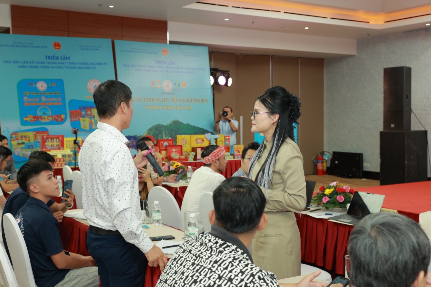 Bên cạnh chương trình đào tạo, hội nghị còn tổ chức khu vực trưng bày và giới thiệu sản phẩm đặc sản địa phương với sự tham gia của hàng chục gian hàng đến từ các tỉnh trong vùng. Các sản phẩm như yến sào, nước mắm truyền thống, rong nho, sản phẩm thảo dược, đồ thủ công mỹ nghệ… không chỉ được giới thiệu tại sự kiện mà còn được phát sóng trực tiếp qua các phiên livestream, tạo cơ hội tiếp cận người tiêu dùng trên phạm vi toàn quốc. Đây là hình thức giới thiệu sản phẩm vùng miền có tính liên kết về nội dung, truyền thông và công nghệ.