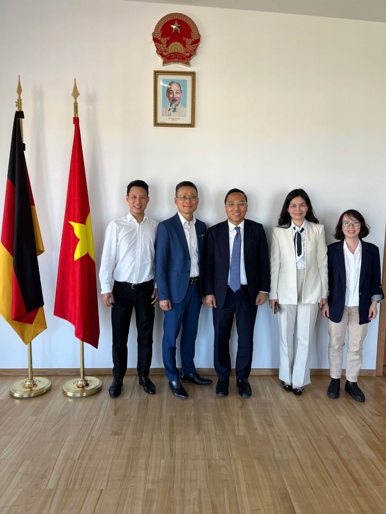 Kết thúc chương trình làm việc tại Đức, Thứ trưởng Nguyễn Hoàng Long đã đến thăm và làm việc với cơ quan Thương vụ Việt Nam tại Đức. Thứ trưởng ghi nhận và đánh giá cao vai trò cầu nối của Thương vụ trong thúc đẩy quan hệ thương mại song phương, đồng thời đề nghị Thương vụ tiếp tục chủ động kết nối doanh nghiệp, nắm bắt xu hướng chuyển dịch chuỗi cung ứng, và tăng cường hỗ trợ triển khai các sáng kiến hợp tác năng lượng với đối tác Đức trong giai đoạn tới.