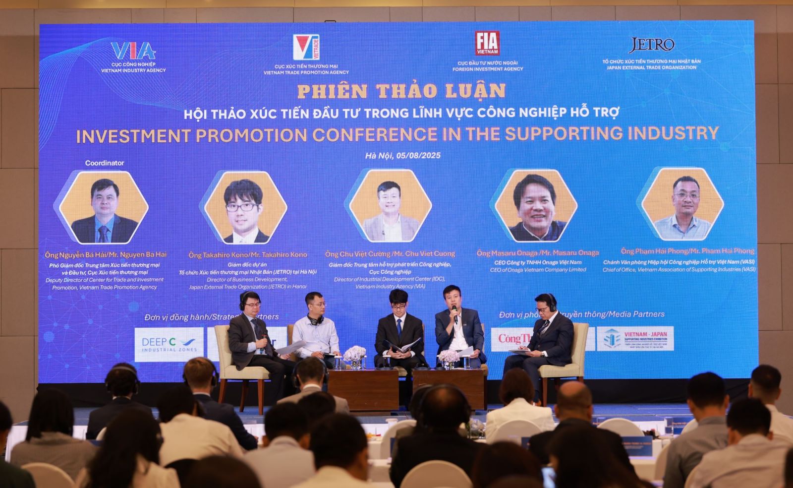 Ngày 5/8/2025, tại Hà Nội đã diễn ra Hội thảo “Xúc tiến đầu tư trong lĩnh vực công nghiệp hỗ trợ”. Đây là sự kiện chuyên sâu được phối hợp đồng tổ chức bởi Cục Xúc tiến thương mại, Cục Công nghiệp (Bộ Công Thương), Cục Đầu tư nước ngoài (Bộ Tài chính), Ban Quản lý Khu Kinh tế Hải Phòng, Tổ chức Xúc tiến thương mại Nhật Bản (JETRO) và các cơ quan chính quyền địa phương, hiệp hội ngành hàng liên quan.