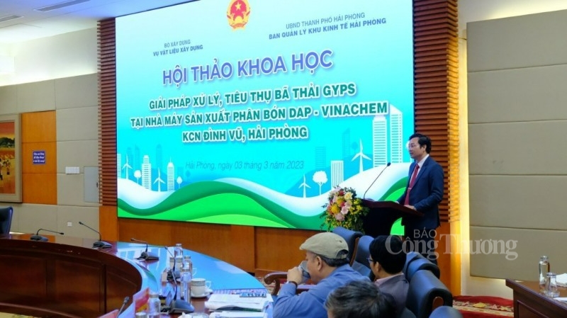 Mới đây, Bộ Xây dựng, BQL Khu kinh tế Hải Phòng đồng chủ trì tổ chức hội thảo "Giải pháp xử lý, tiêu thụ bã gyps tại bón DAP – Vinachem, KCN Đình Vũ, Hải Phòng".