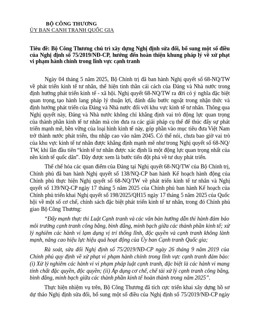 Thực hiện quy định tại Thông tư số 47/2025/TT-BCT ngày 26 tháng 8 năm 2025 của Bộ trưởng Bộ Công Thương quy định về xây dựng, ban hành và tổ chức thi hành văn bản quy phạm pháp luật của Bộ Công Thương, Cục Công nghiệp gửi hồ sơ Dự thảo Thông tư để Quý đơn vị phối hợp thực hiện đăng tải xin ý kiến trên Cổng Thông tin điện tử, bao gồm: