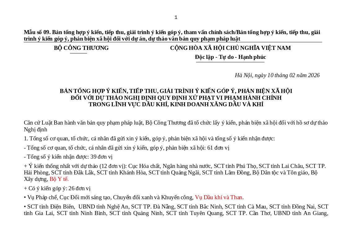 - Tổng số cơ quan, tổ chức, cá nhân đã gửi xin ý kiến, góp ý, phản biện xã hội: 61 đơn vị