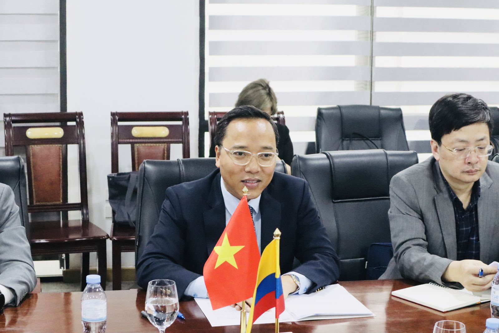 On the Colombian side were Ambassador Camila Polo Flórez; Laura Leguizamo Naranjo, Second Secretary of the Embassy; and several other officials from the Colombian Embassy in Vietnam.