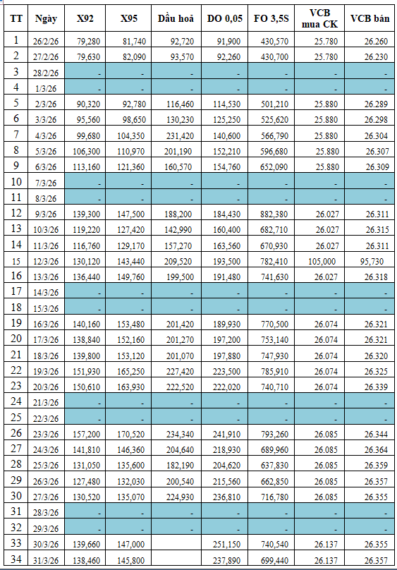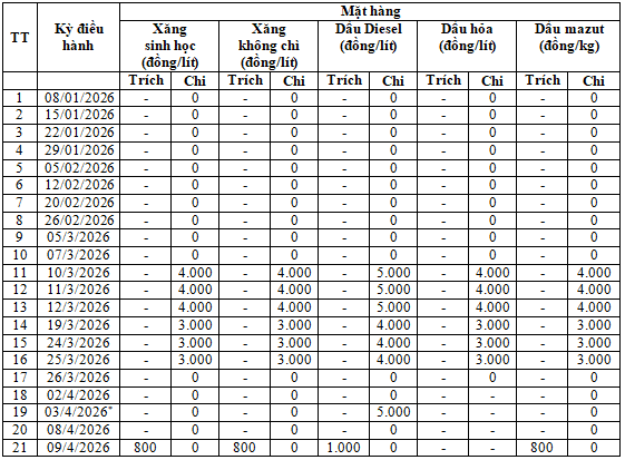 Amid developments in global fuel prices and fluctuations in the VND/USD exchange rate, based on Resolution No. 36/NQ-CP dated March 6, 2026 of the Government on the regular Government meeting for February 2026, Resolution No. 55/NQ-CP dated March 19, 2026 amending and supplementing Resolution No. 36, and in line with the Prime Minister’s direction under Decision No. 482/QD-TTg dated March 26, 2026, Document No. 2058/VPCP-KTTH dated March 10, 2026, Document No. 2113/VPCP-KTTH dated March 11, 2026, and Document No. 2406/VPCP-KTTH dated March 19, 2026, the Ministry of Industry and Trade and the Ministry of Finance jointly decided on a fuel price management plan to ensure a balance of interests among market participants.