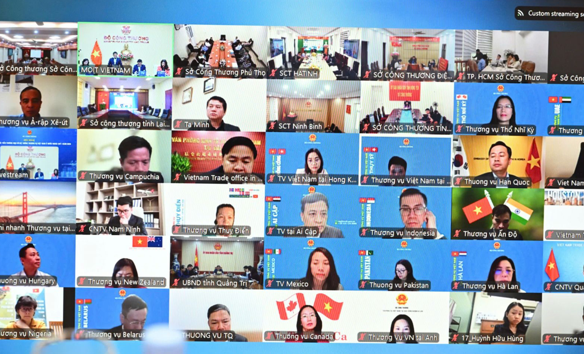 Representatives of trade offices and localities attended the conference online. Photo: Can Dung.