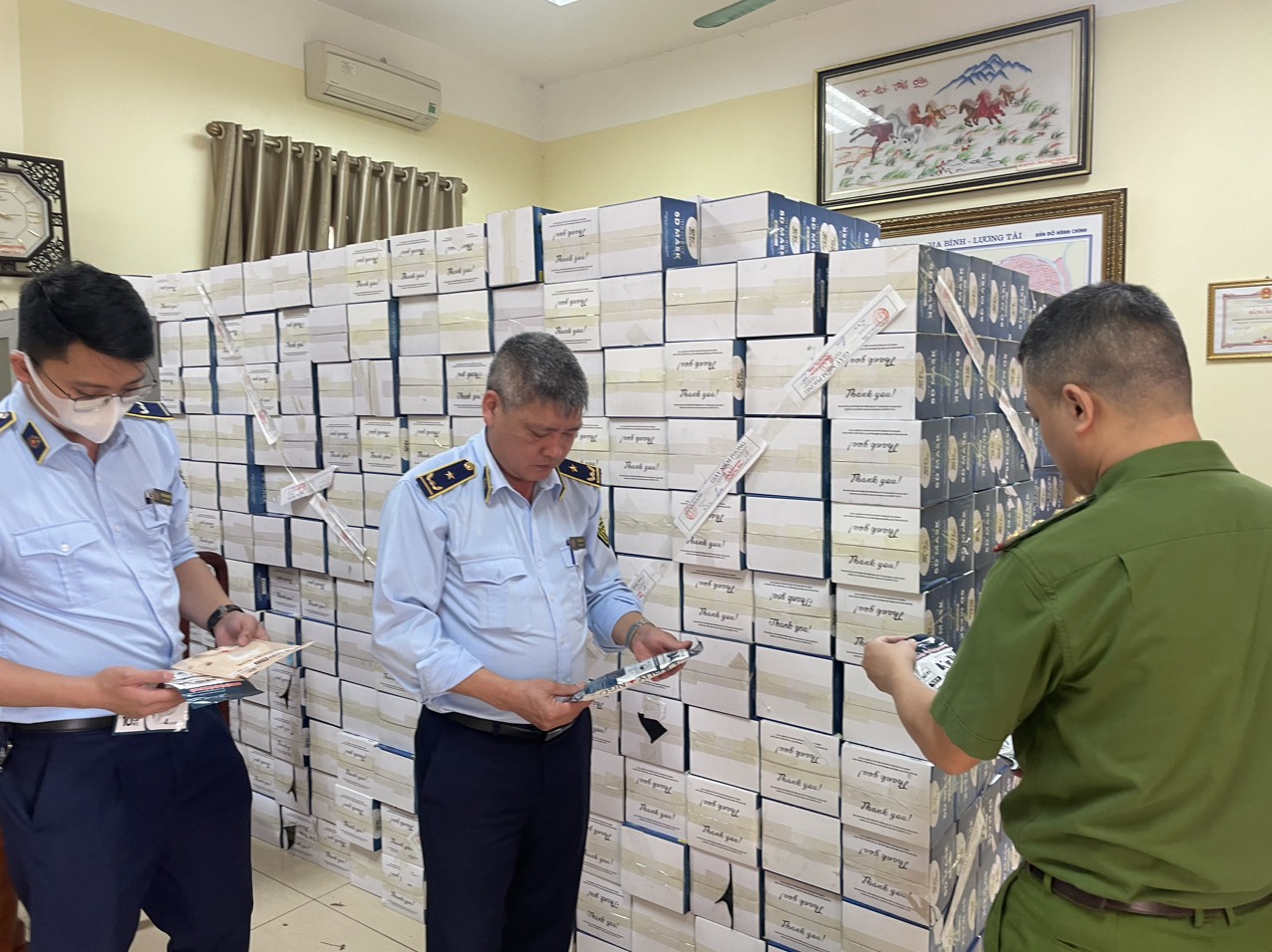 Kết quả khám, lực lượng chức năng phát hiện 12.000 gói Khẩu trang KF94 (loại 10 chiếc/gói); 13.800 gói Khẩu trang 5D SMART MASK (loại 10 chiếc/gói); 225.000 chiếc Bao bì đựng khẩu trang 5D SMART MASK; 30.000 chiếc Bao bì đựng khẩu trang KF94 có dấu hiệu giả mạo nhãn hiệu của Công ty TNHH Duy Ngọc Bắc Ninh. Tổng trị giá hàng hóa vi phạm 43.800.000 đồng và 255.000 đơn vị bao bì giả mạo.