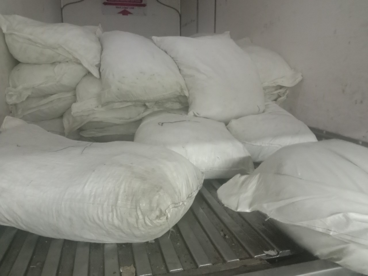 Tại thời điểm khám, phát hiện trên thùng xe tải hàng hóa gồm 1.000kg chân gà đã qua chế biến đựng trong 36 bao tải dứa đang chảy nước và bốc mùi hôi thối. Trị giá hàng hóa ước tính là 25.000.000 đồng. Qua kiểm tra trên bao tải chứa đựng hàng hóa không có nhãn hàng hóa, không có thông tin căn cứ xác định được nguồn gốc nơi sản xuất hoặc xuất xứ của hàng hóa.