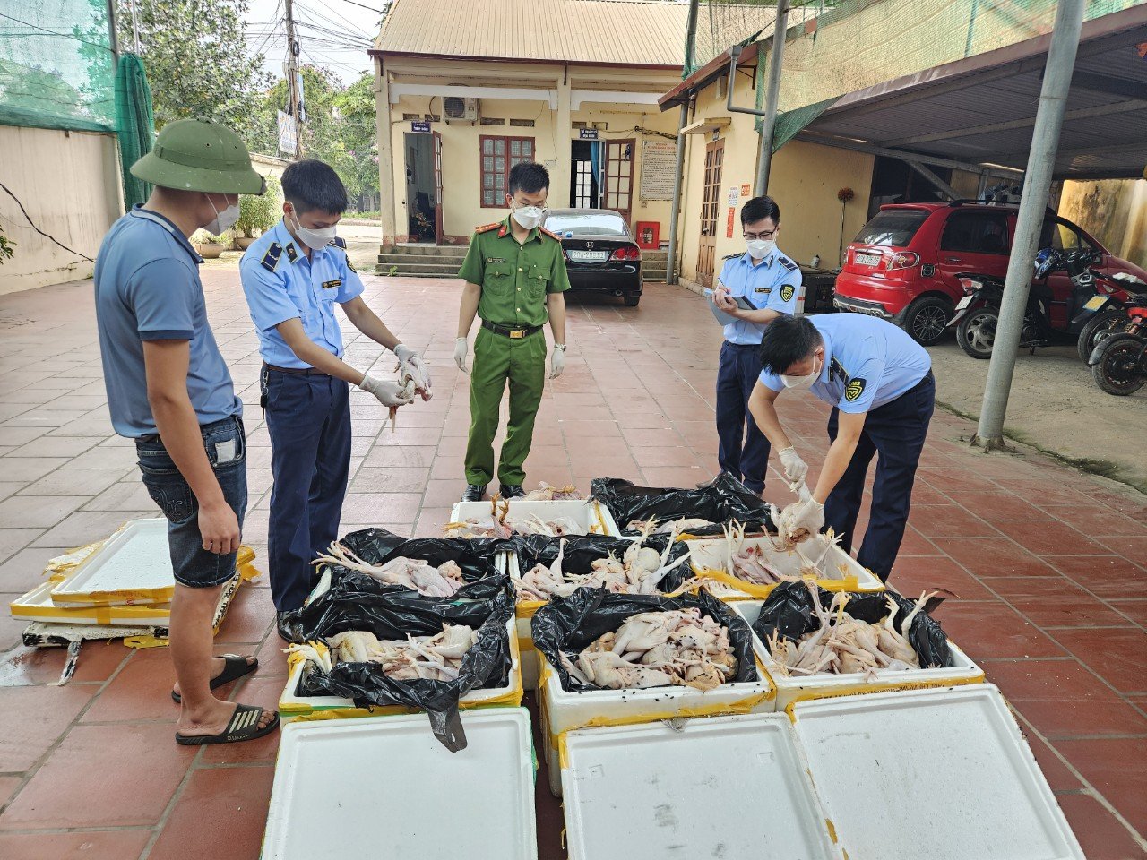 Tại thời điểm khám, Đoàn kiểm tra phát hiện 08 thùng xốp chứa đựng 168,8 kg thịt gà (nguyên con) không có thông tin về nguồn gốc, xuất xứ và đã bốc mùi hôi thối, biến đổi về màu sắc, không đảm bảo vệ sinh an toàn thực phẩm. Tổng trị giá hàng hóa vi phạm là hơn 10 triệu đồng.