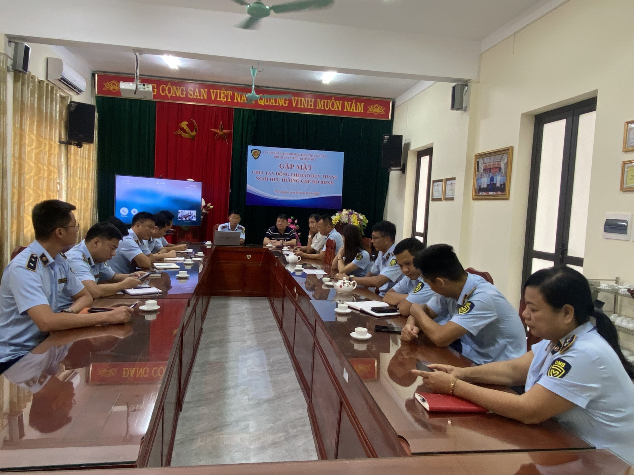Sáng ngày 24/9/2022 tại Đội QLTT Số 2 - Lãnh đạo và toàn thể công chức hai Đội QLTT họp triển khai nhiệm vụ của Lãnh đạo Cục QLTT Thái Nguyên
