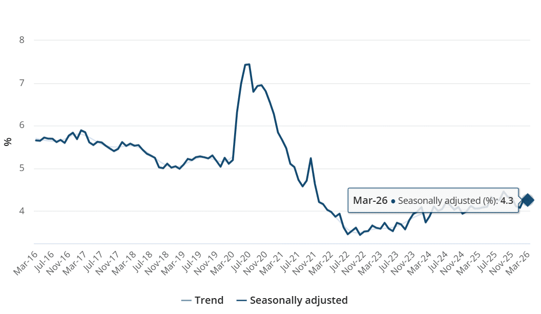 1. Tỷ lệ thất nghiệp tại Úc tháng 3/2026 duy trì ở mức 4,3%