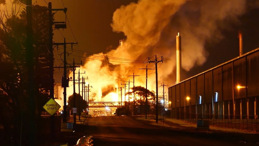 Vụ cháy tại nhà máy lọc dầu ở Geelong, bang Victoria; nguồn: AFR