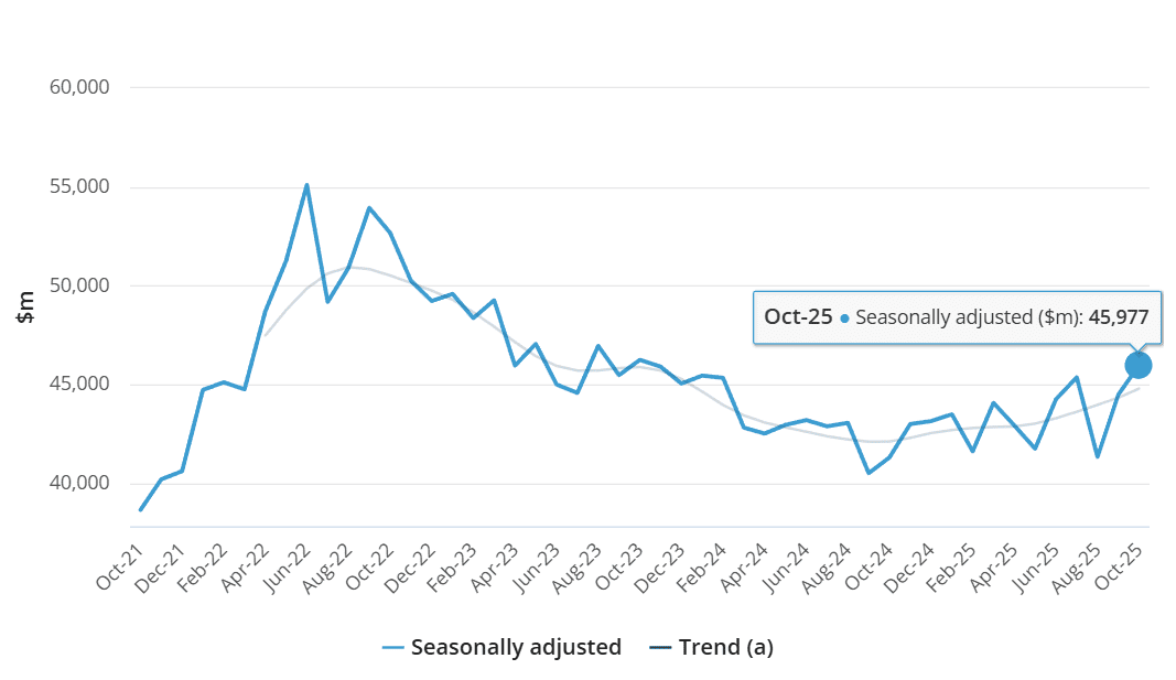 Theo số liệu của cơ quan Thống kê Úc (ABS), xuất nhập khẩu hàng hóa của Úc trong tháng 10/2025 tiếp tục phục hồi so với tháng trước, trong đó kim ngạch xuất khẩu hàng hóa đạt mức 45,997 tỷ AUD, tăng 1,49 tỷ AUD, tương đương 3,4% so với tháng trước, chủ yếu nhờ xuất khẩu nhóm hàng hóa phi tiền tệ.