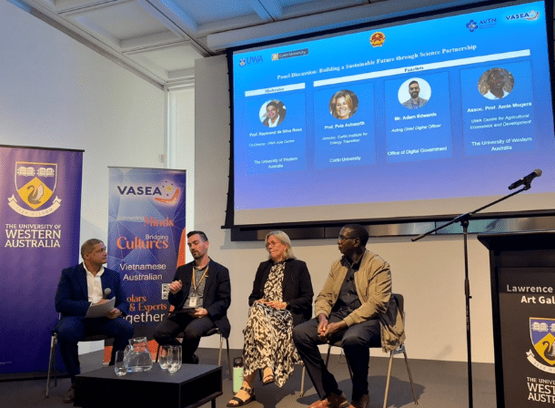 Vừa qua tại Perth, Tổng Lãnh sự quán Việt Nam phối hợp Trung tâm Châu Á – Đại học Tây Úc (UWA), cùng Hội Trí thức và Chuyên gia Việt Úc (VASEA) và Mạng lưới Tài năng Việt Úc (AVTN), đã tổ chức Diễn đàn Tây Úc – Việt Nam: Tăng cường Hợp tác Khoa học & Công nghệ vì Tương lai Bền vững.