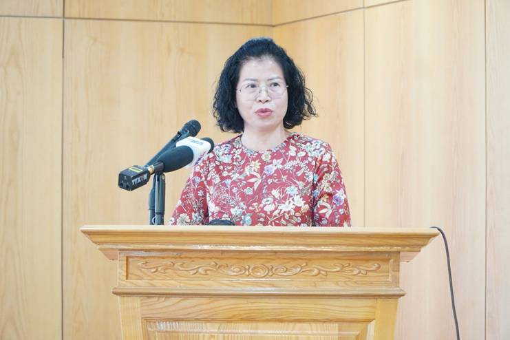 Phó Cục trưởng Cục Thương mại điện tử và Kinh tế số Nguyễn Thị Minh Huyền trả lời câu hỏi báo chí về vấn đề livestream bán hàng trên các nền tảng thương mại điện tử