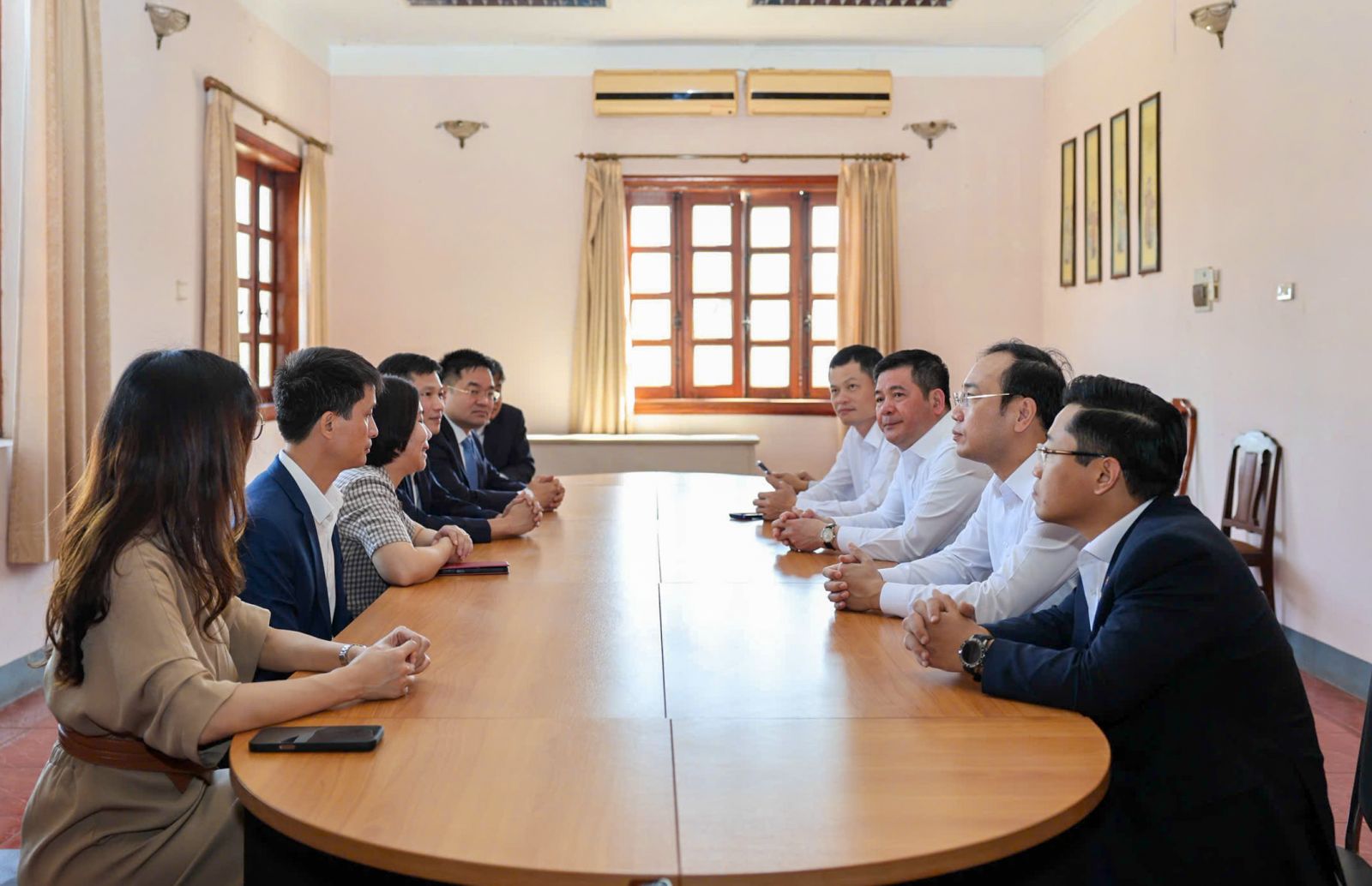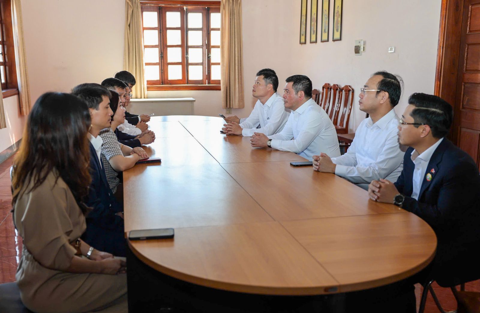 Bộ trưởng Nguyễn Hồng Diên - trưởng đoàn Bộ Công Thương làm việc với Thương vụ Việt Nam tại Lào.