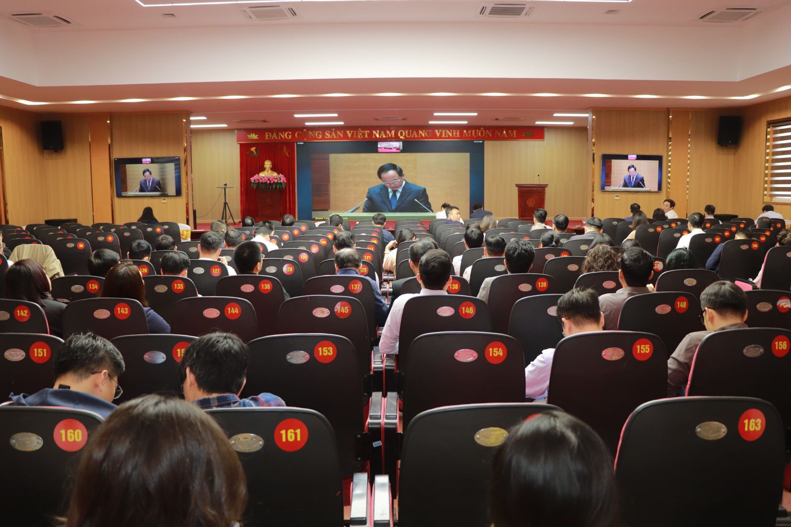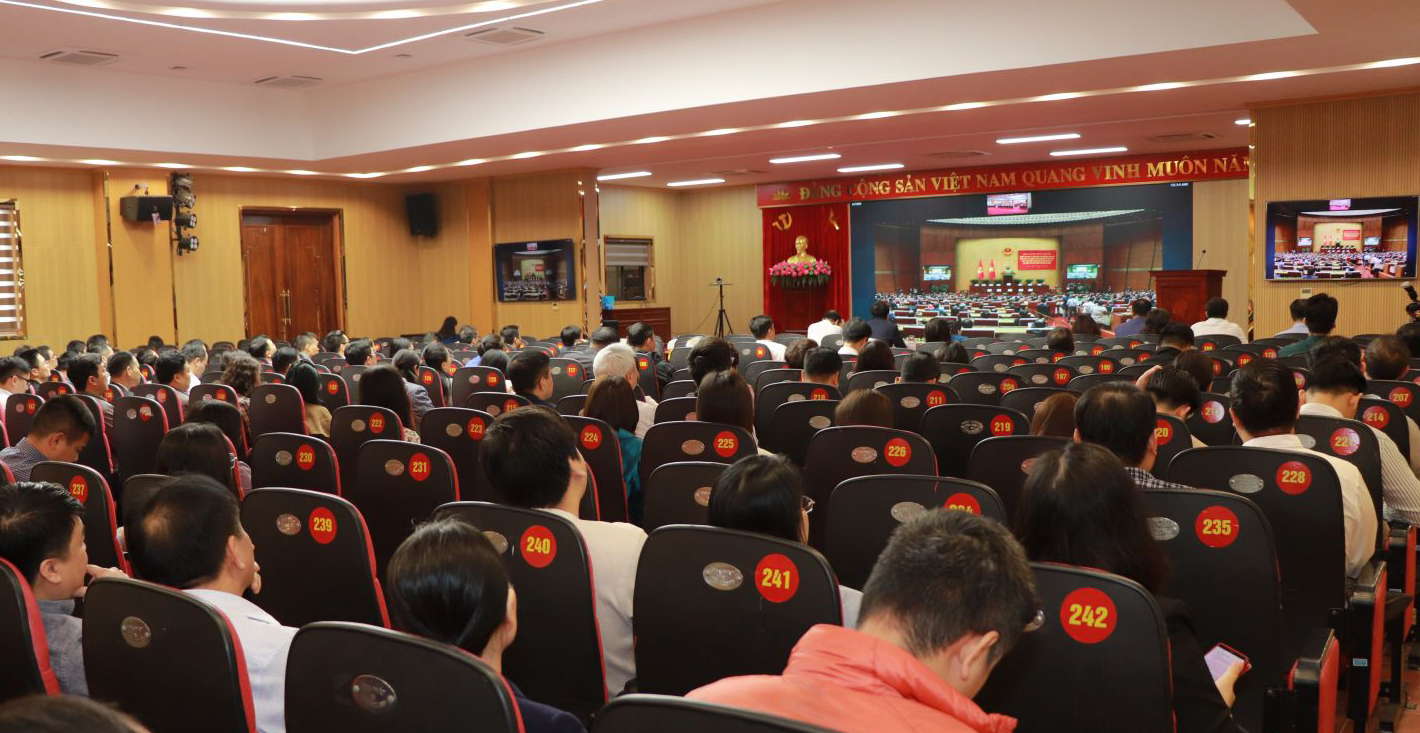 Hội nghị được tổ chức theo hình thức trực tiếp và kết nối trực tuyến từ điểm cầu chính tại phòng họp Diên Hồng, Nhà Quốc hội đến điểm cầu các tỉnh ủy, thành ủy, đảng ủy trực thuộc Trung ương, điểm cầu các ban, bộ, ngành, cơ quan Trung ương, các cơ quan, đơn vị.