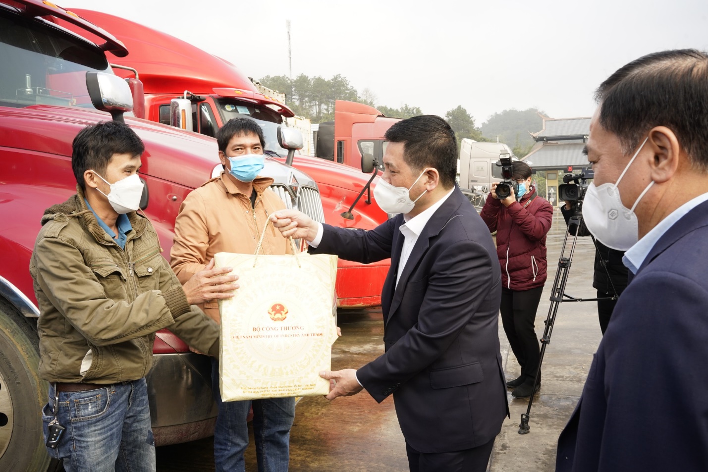 Bộ trưởng tặng quà lực lượng tài xế vận chuyển hàng hoá đang chờ thông quan