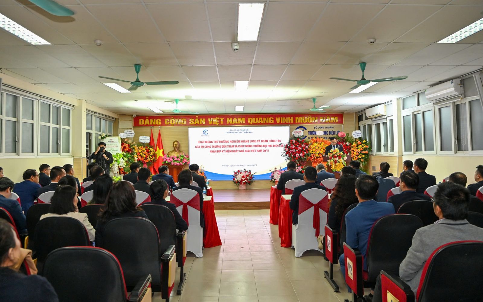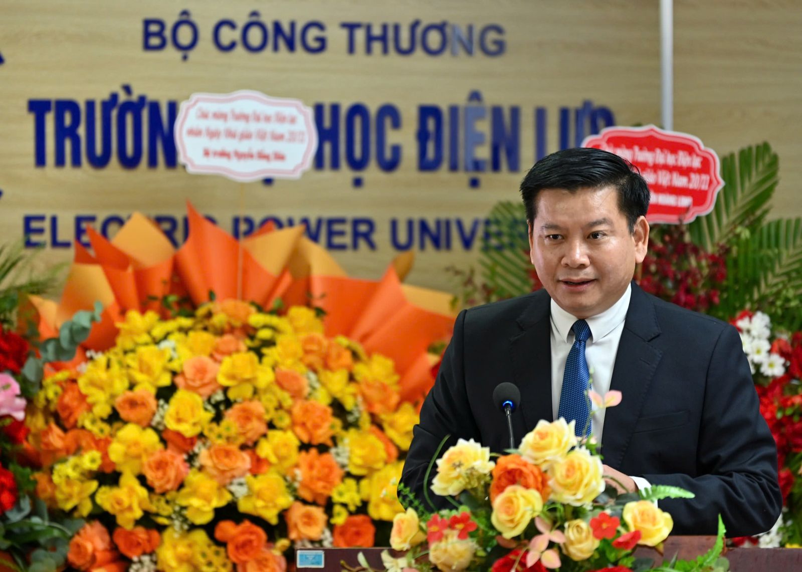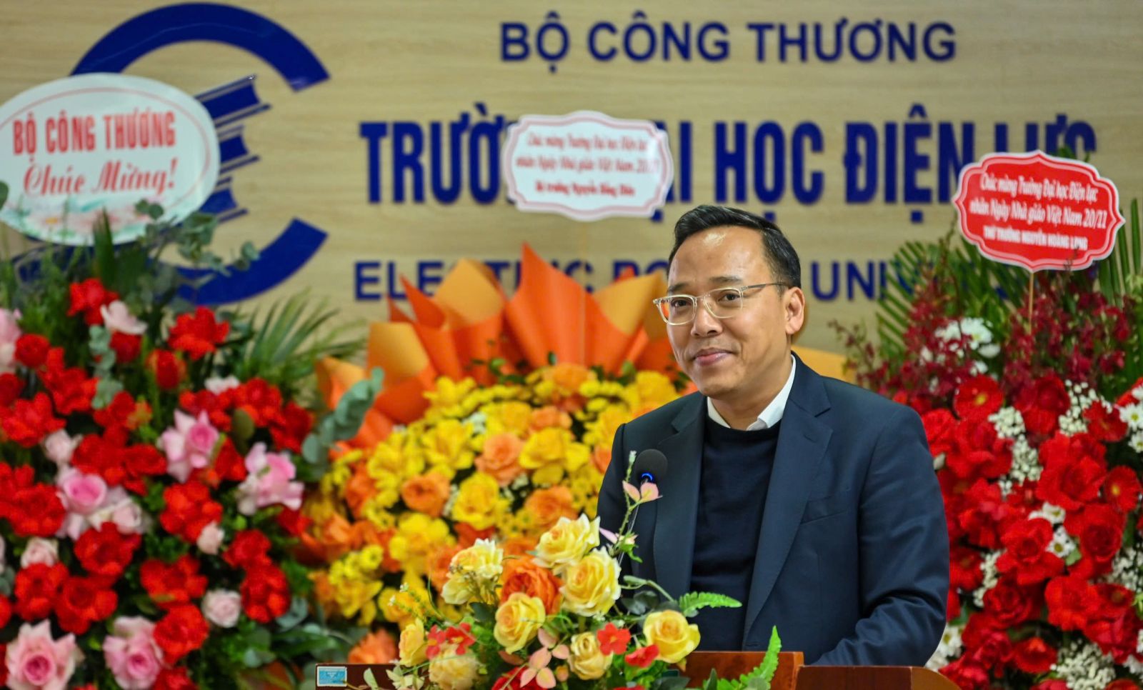 Tại buổi lễ, Thứ trưởng Bộ Công Thương Nguyễn Hoàng Long thay mặt lãnh đạo Bộ gửi lời chúc mừng nồng nhiệt tới tập thể lãnh đạo, cán bộ viên chức, người lao động cùng sinh viên Trường Đại học Điện lực. Thứ trưởng nhấn mạnh, đây là dịp để tôn vinh những người đang và sẽ tiếp tục cống hiến cho sự nghiệp trồng người cao quý.