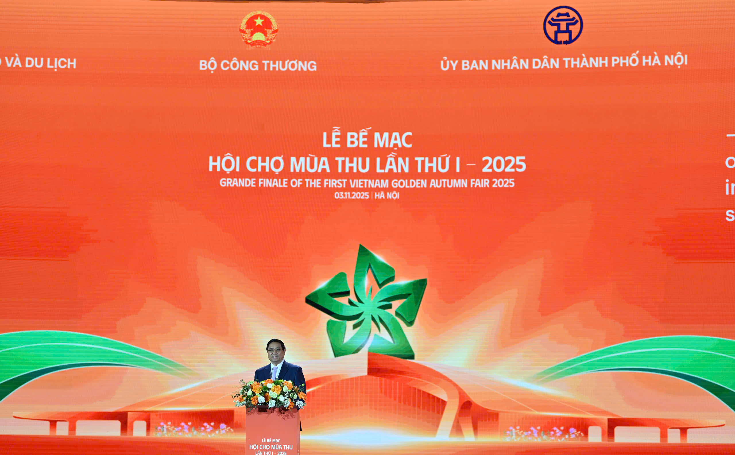 Tối 3/11, tại Trung tâm Triển lãm Việt Nam (VEC), Thủ tướng Chính phủ Phạm Minh Chính đã tham dự và có bài phát biểu trong Lễ bế mạc Hội chợ Mùa Thu lần thứ nhất - 2025.