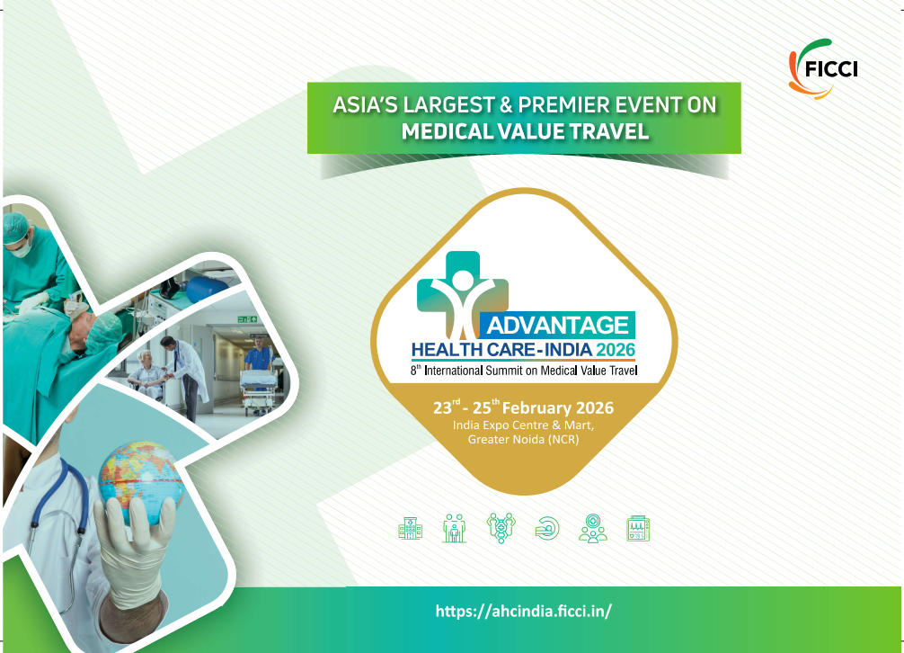Từ ngày 23 – 25 tháng 02 năm 2026 sẽ diễn ta sự kiện Advantage Healthcare India (AHCI) lần thứ 8 tại Trung tâm Triển lãm và Hội nghị Ấn Độ (India Expo Centre & Mart), Greater Noida, bang Uttar Pradesh, Ấn Độ. Chương trình do Liên đoàn Công nghiệp và Thương mại Ấn Độ (FICCI) tổ chức.