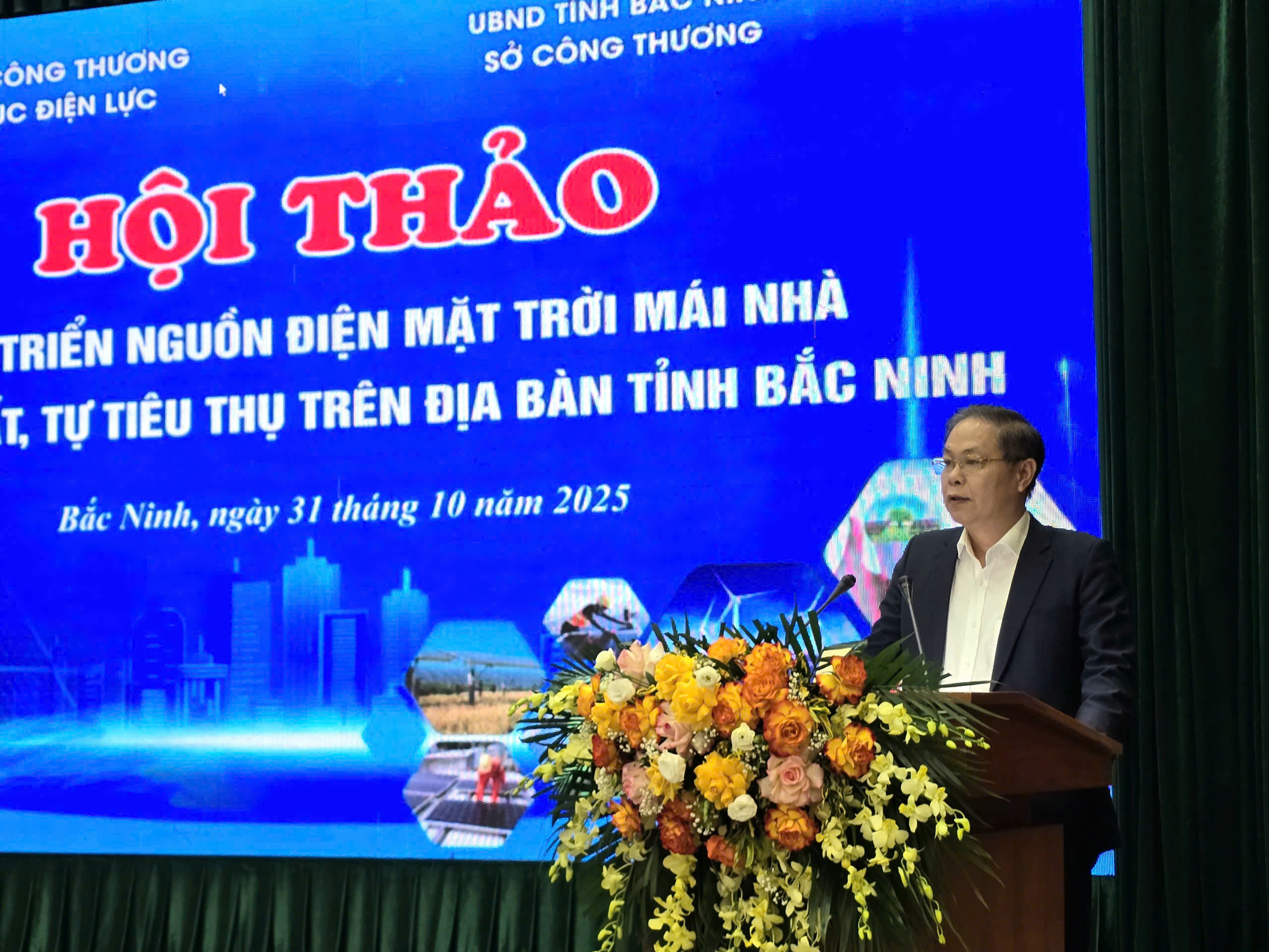 Chiều 31/10, UBND tỉnh Bắc Ninh tổ chức hội thảo “Phát triển điện mặt trời mái nhà tự sản xuất, tự tiêu thụ” với sự tham dự của Cục Điện lực, Bộ Công Thương.